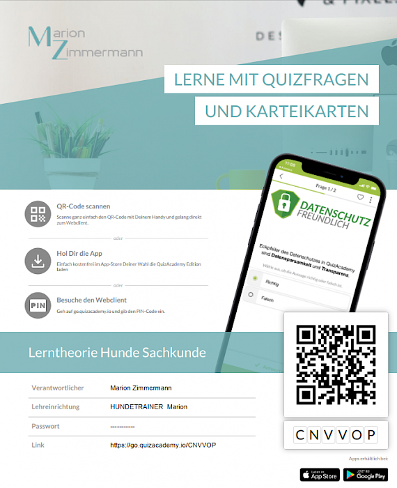 Nach dem Kauf erhältst du deine Zugangsdaten als pdf zum Download zu den Lernkarten und Übungsquizzen.